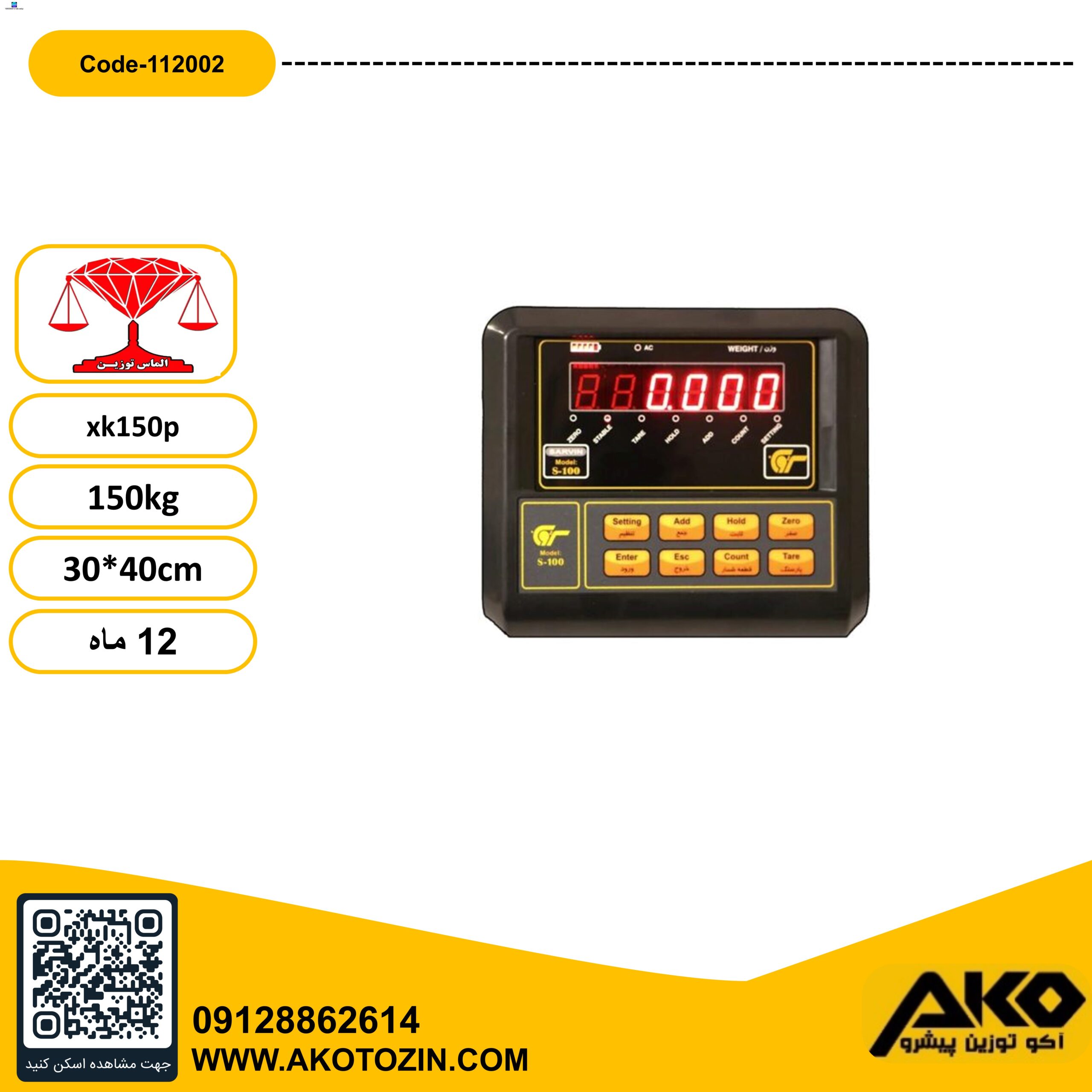 باسکول 150کیلویی مدل XK150P الماس توزین