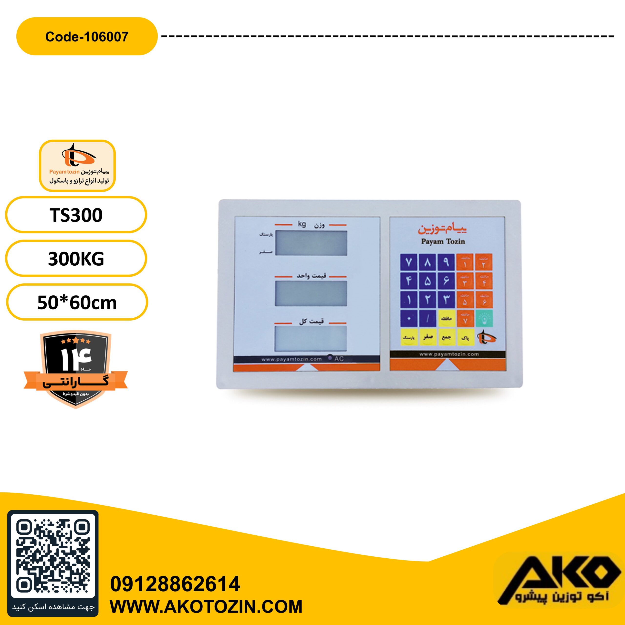 قیمت محصولات بر اساس ظرفیت، مدل و امکانات متغیر است. جهت دریافت قیمت روز باسکول یا ترازو پیام توزین میتوانید با فروشگاه آکوتوزین تماس بگیرید یا سایت آکوتوزین را مشاهده کنید.