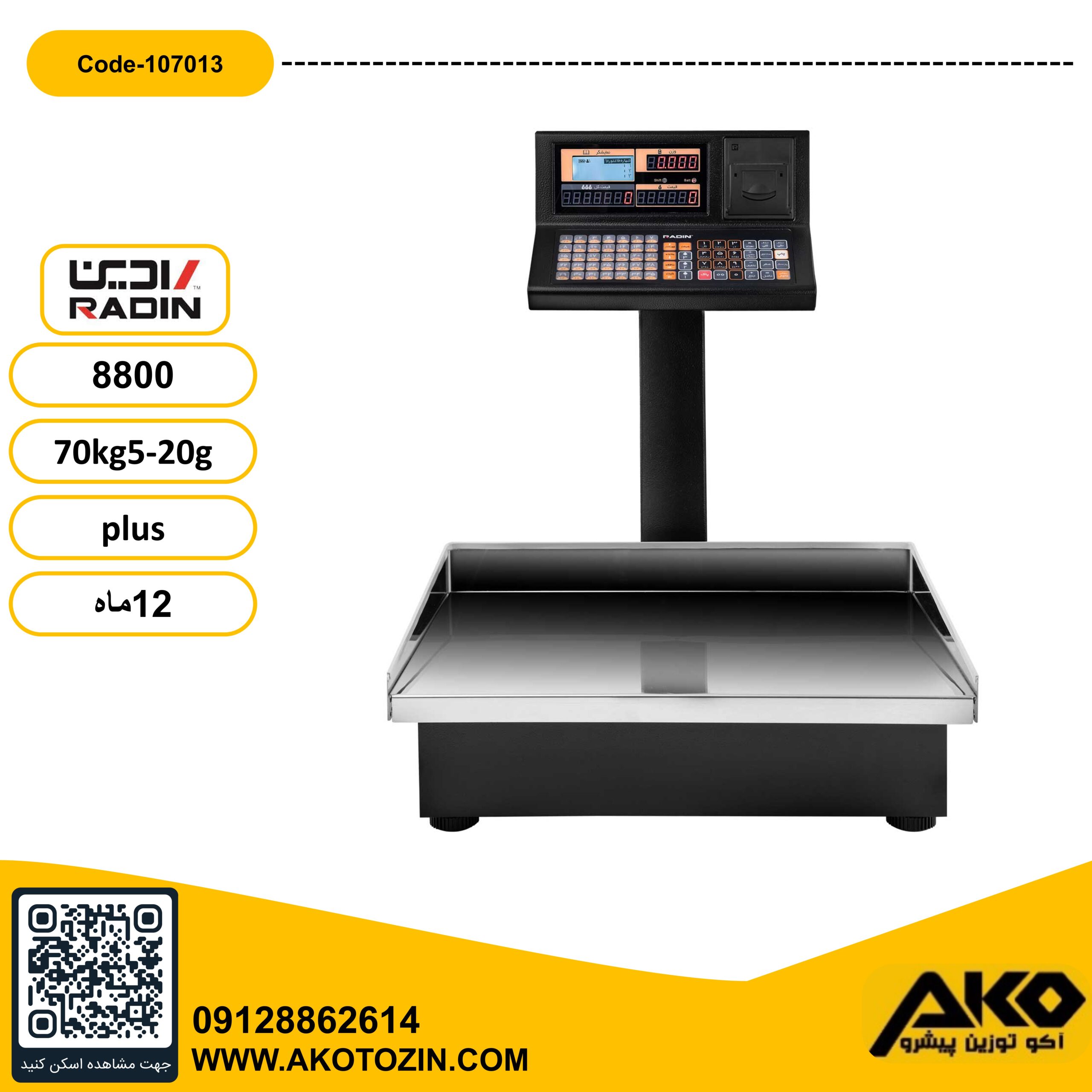 ترازو فروشگاهی چاپگردار 70کیلویی مدل 8800PLUS رادین