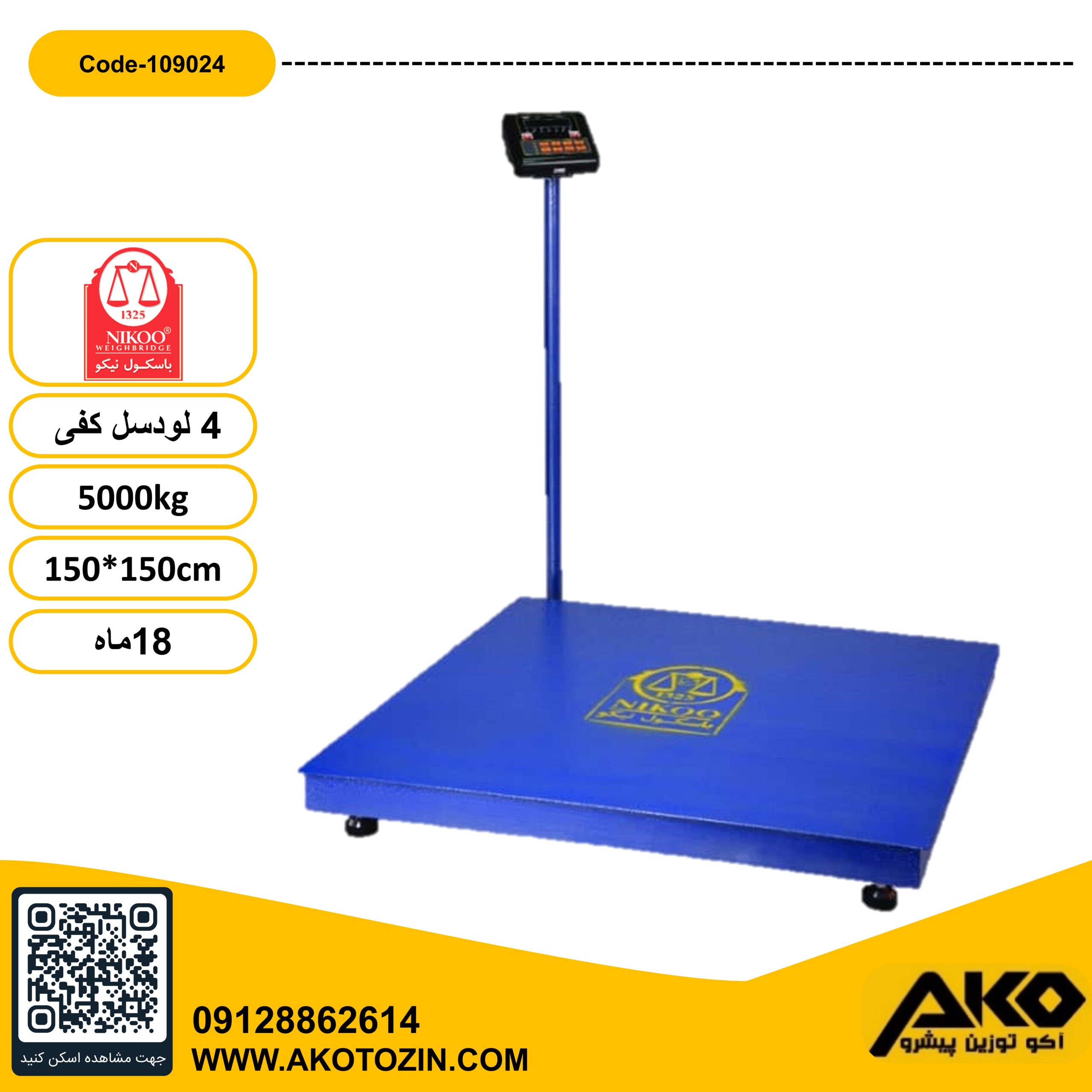 باسکول 4لودسل کفی 3000کیلوگرمی متوسط نیکو (150*150)