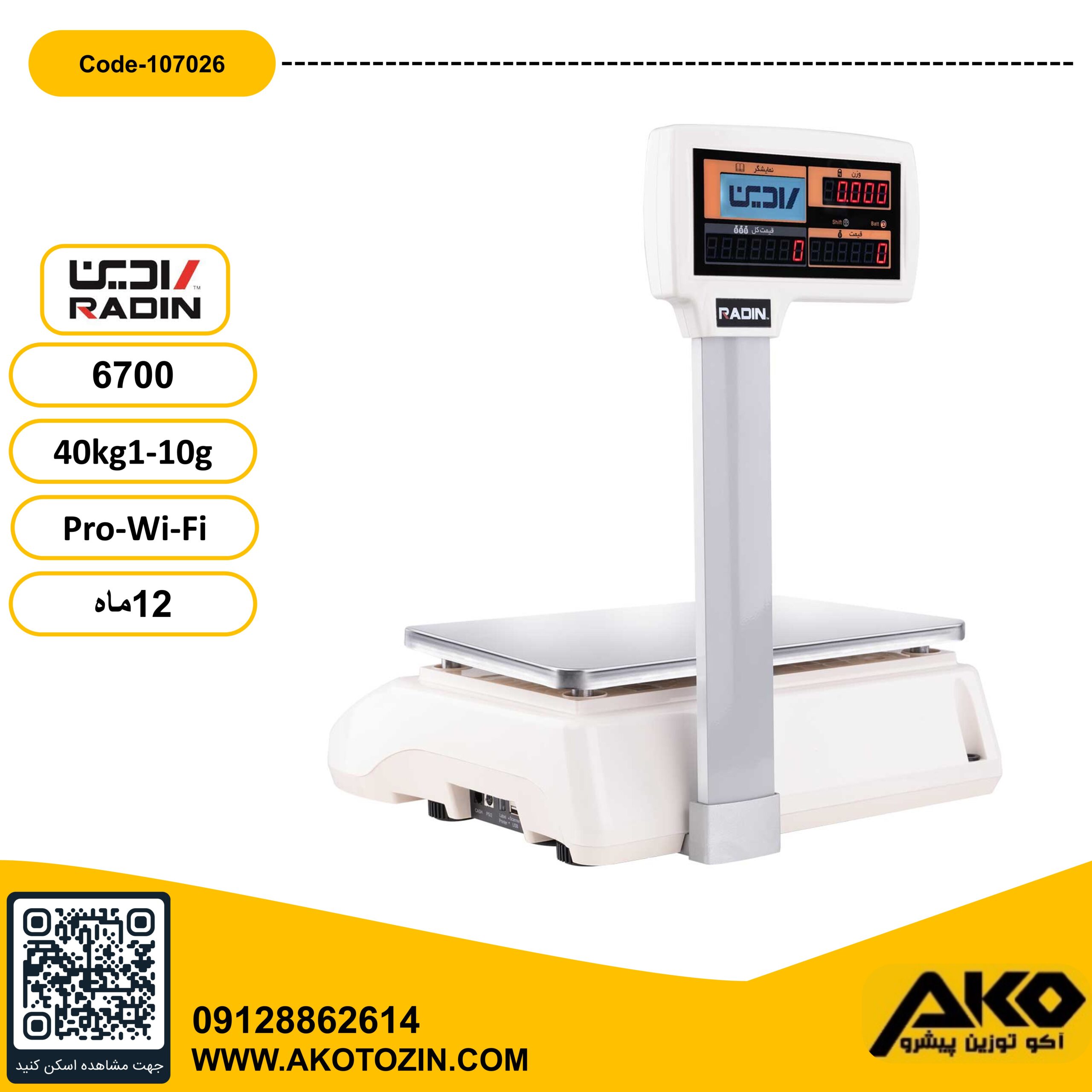 ترازو فروشگاهی چاپگردار 40کیلویی مدل 6700WIFI-PRO رادین