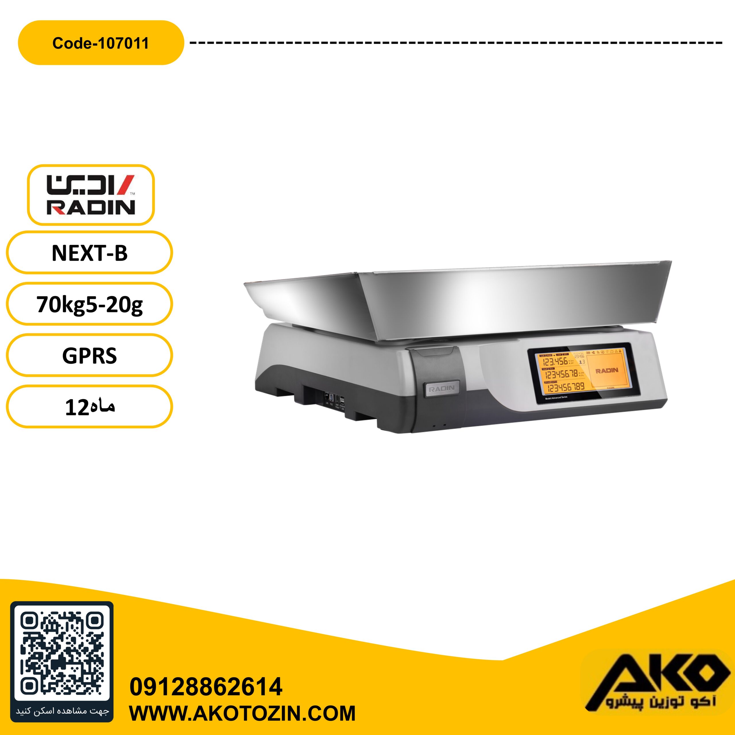 ترازو فروشگاهی چاپگردار 70کیلویی مدل NEXT-B-GPRS رادین