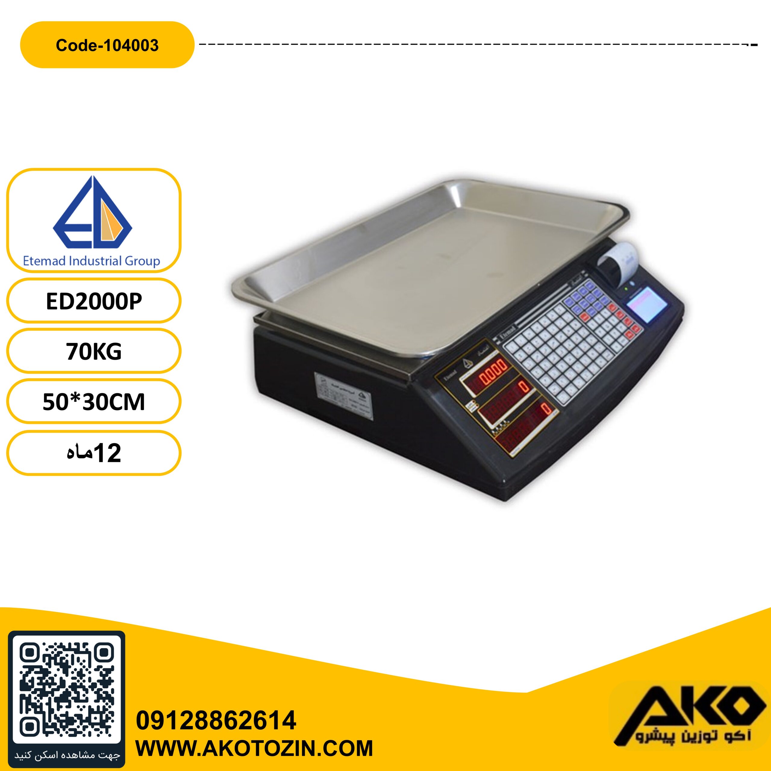 - نمایشگر: LCD چهارخطی فارسی دوطرفه + وزن ۶ رقم، قیمت واحد ۶ رقم، قیمت کل ۷ رقم